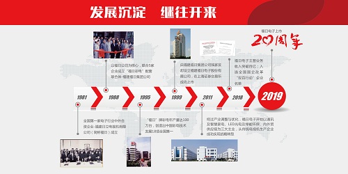 20年前,順應市場經濟的發展和要求,福日電子于1999年5月由福建福日集團公司控股設立并在上海證券交易所掛牌上市。基于公司的歷史、現狀及國家產業政策導向,通過持續不斷地資源整合、資產重組、結構調整,公司已從傳統電視機生產企業成功實現戰略轉型,形成了通訊及智慧家電、LED光電及綠能環保、內外貿供應鏈等三大主業。截止2018年底,公司總資產為76.35億元,主營業務收入為109.89億元,經濟實力、社會形象顯著提升。